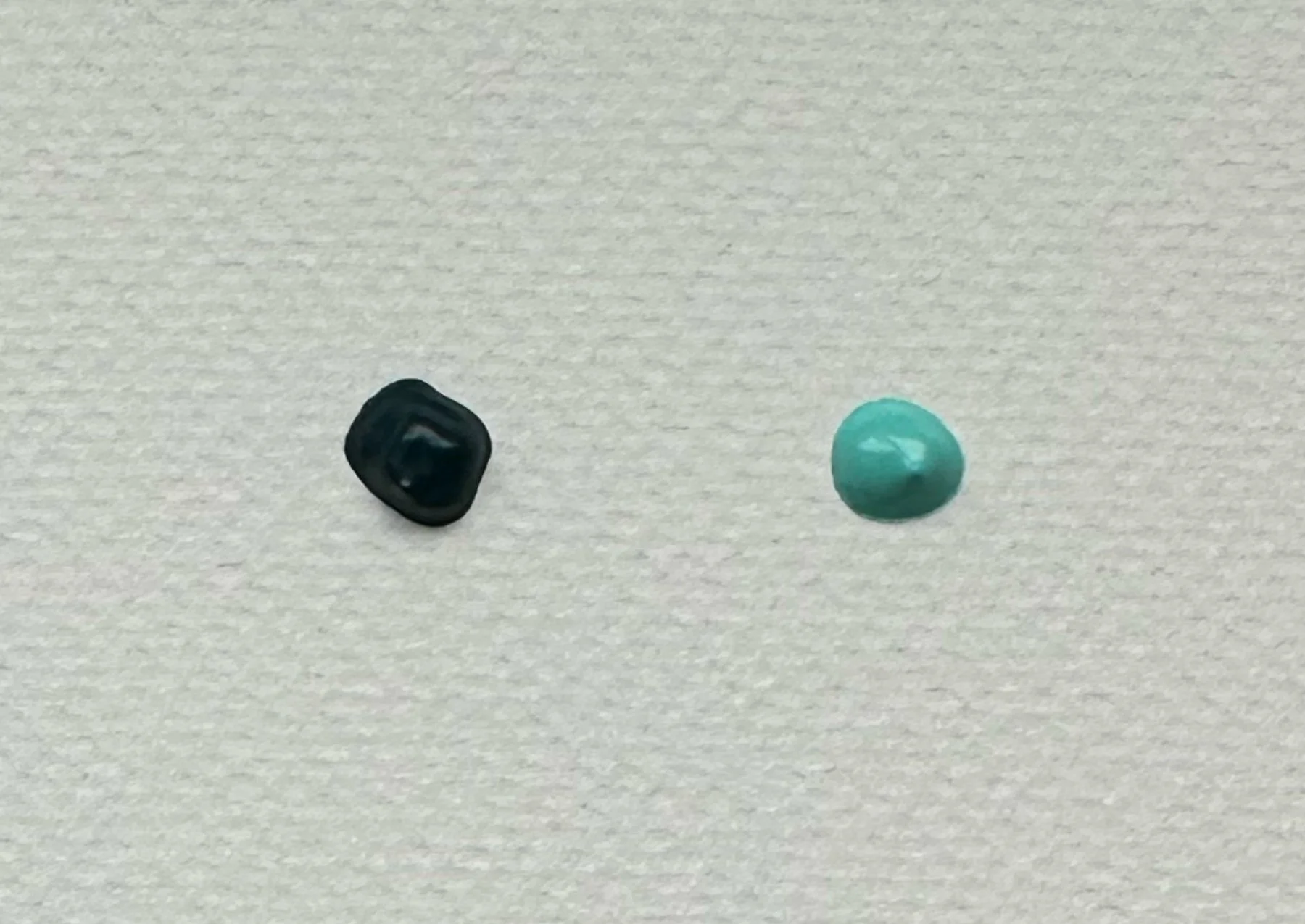 Tools and materials: acrylic paint, paintbrush, pane of glass, X-acto blade, E6000 adhesive, stainless steel earring posts.