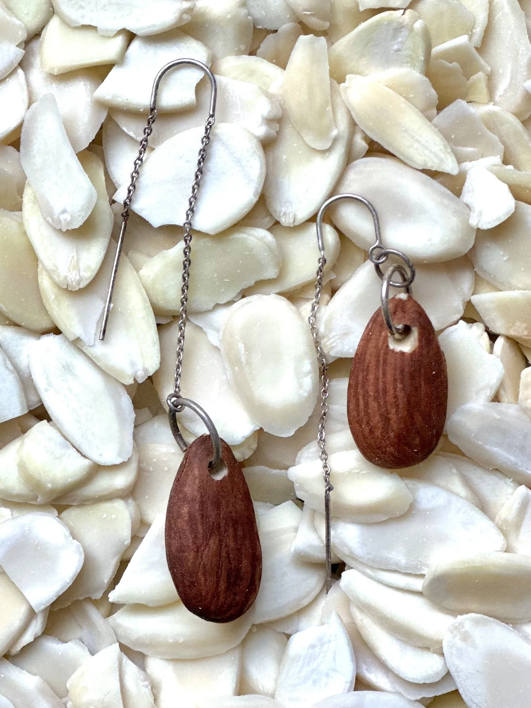 One year of Everything is Jewelry! I figured I’d end where I unofficially began by posting the first thing I threw together when I was joking about the concept: a couple of almonds with a hole drilled through, hung from silver ear wires. These are actually the originals (!), and I feel like they still illustrate the idea pretty well. Take anything, everything, and it can — with a bit of gumption and a sense of humor — become an accessory.