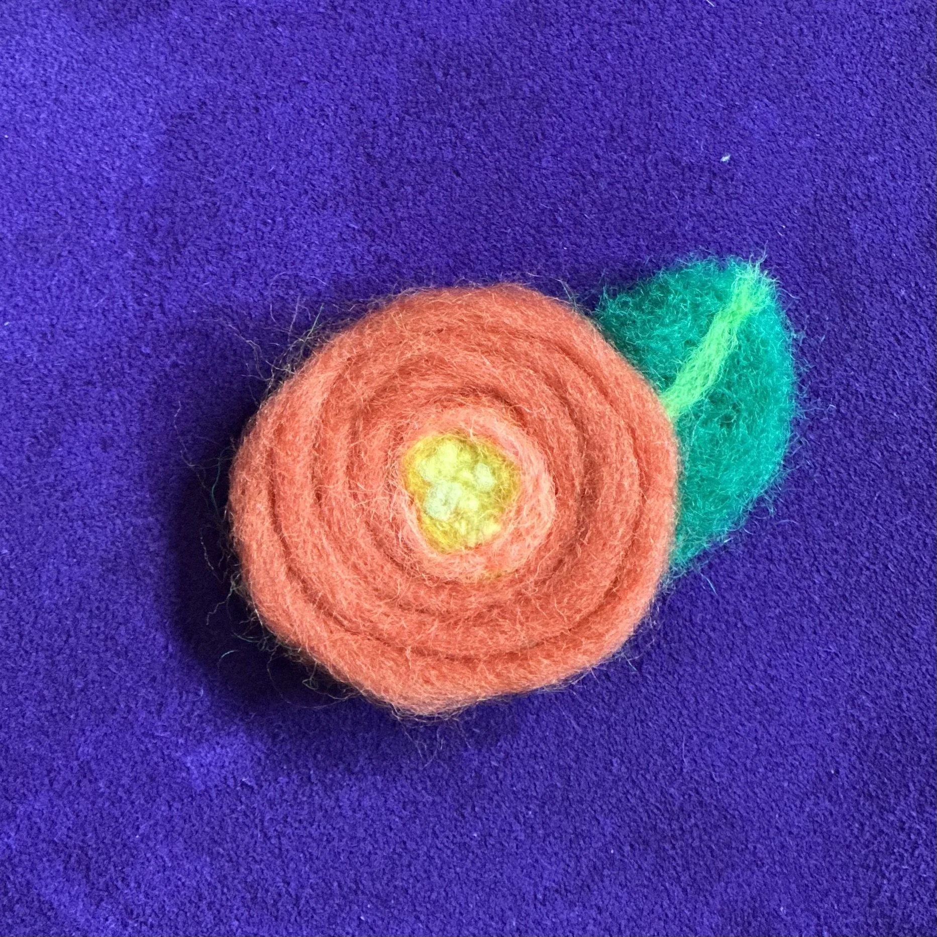 I finished crocheting a cardigan and had some leftover wool, so I swizzed up this little plush flower brooch.