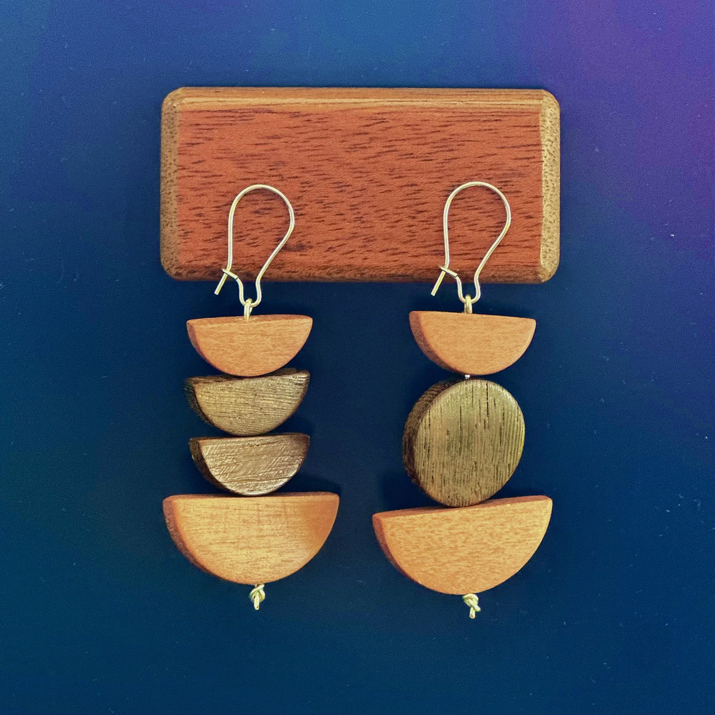 These lil beads came from Tokyo on an incredible trip to Japan. Together, they look a bit like the phases of the moon — if the moon were made of beautiful shades of wood.