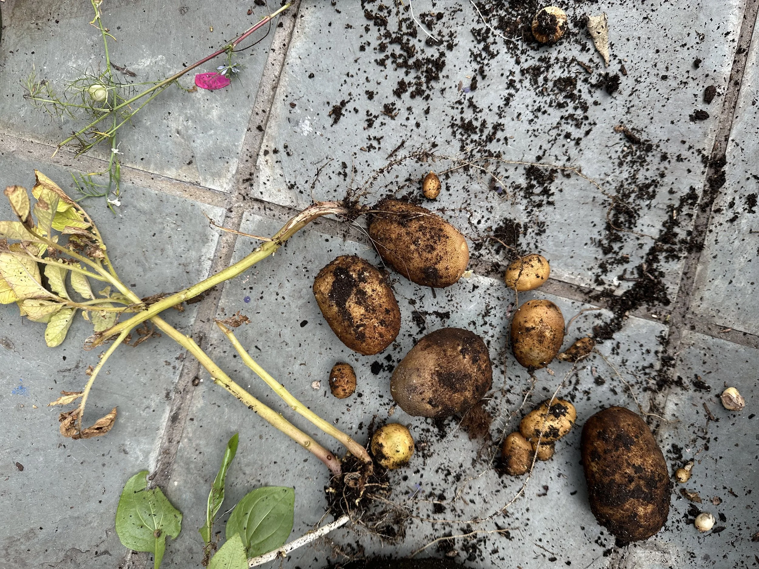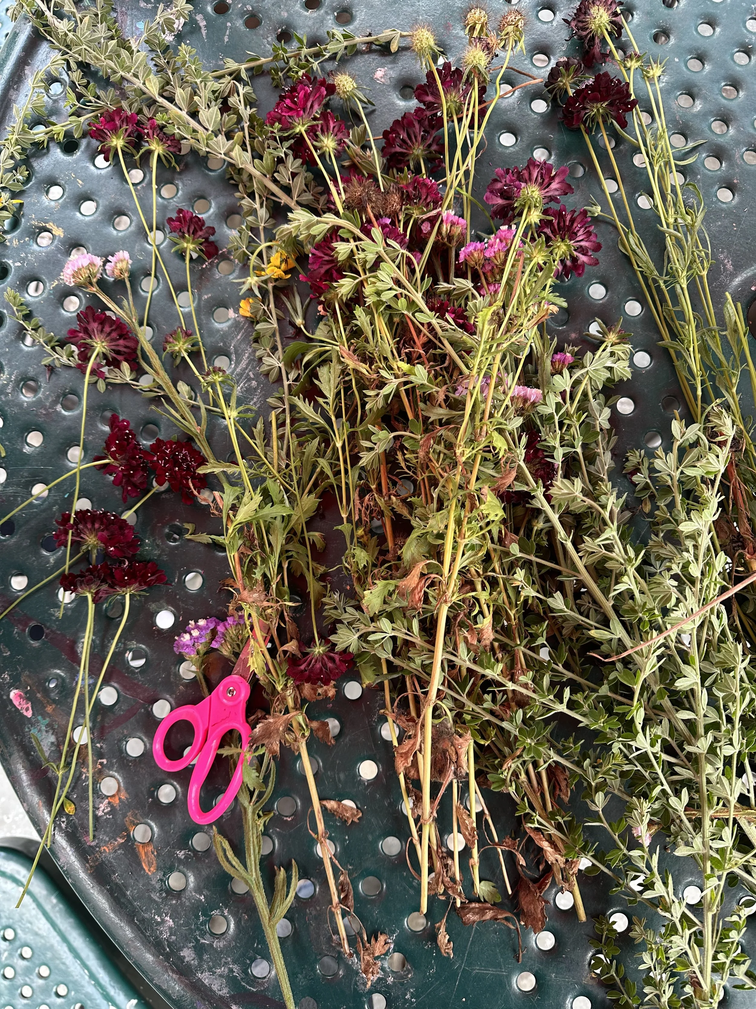 Harvesting seeds from my backyard (scabiosa + sweet peas + nigella) + harvesting potatoes we grew + making bouquets + setting up our new 🪱worm bin🪱 + making a healthy salad for our worms to eat + writing and drawing our first ever Up On Top! Garden Club Magazine!!